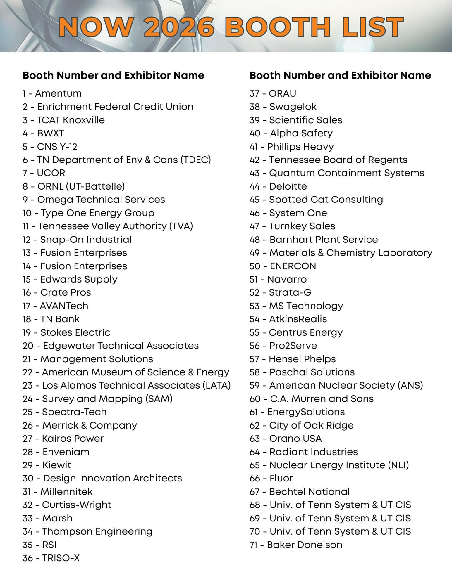 Supporting NOW positions your organization at the center of one of the nation’s premier nuclear industry gatherings. Supporters gain strategic opportunities to elevate their brand and engage with leaders from across the nuclear industry, with visibility before, during, and after the conference. Learn more here.
